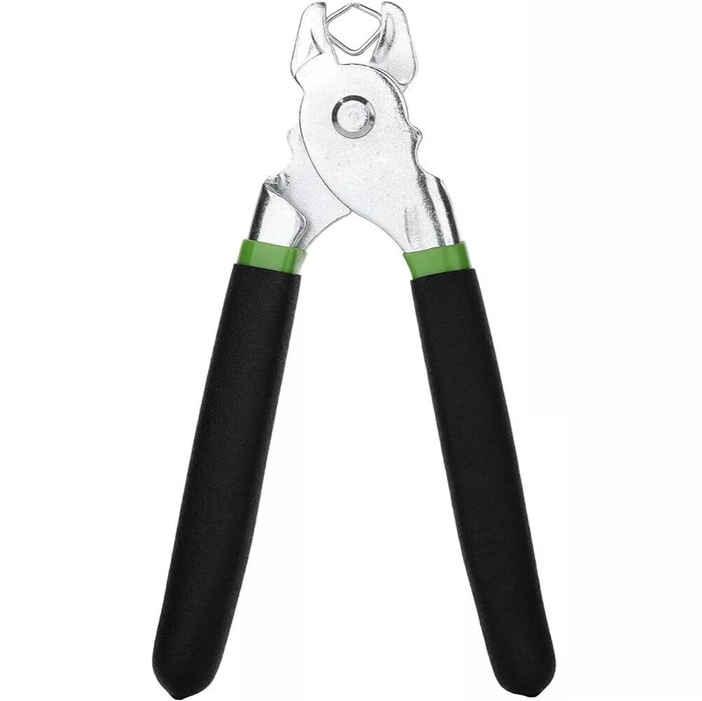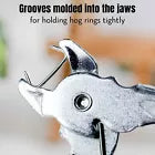 - The pliers' grooved jaws ensure a tight grip on the hog rings for accurate placement.